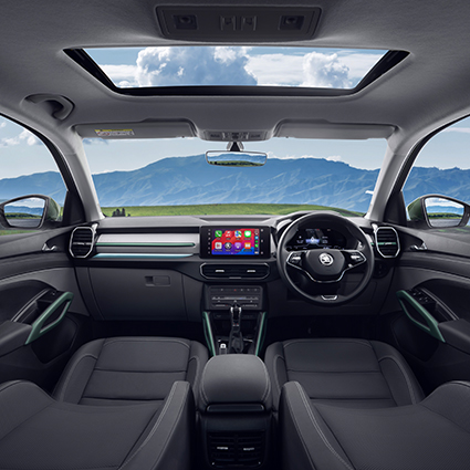 Since setting its wheels on Indian roads in 1999, Škoda has driven innovation and redefined automotive excellence. Whether it's the dynamic Slavia or the bold Kushaq or Kylaq which is made in India for India, each model showcases unmatched craftsmanship, advanced TSI engineering, and a keen eye for design and performance. Introducing your new drive, the all-new Kodiaq, where elegance embraces grandeur. A space where elegance meets innovation.